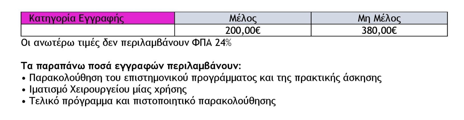 Αντικαταστάσεις ονομάτων που θα γνωστοποιηθούν εγγράφως στη γραμματεία του Workshop, ως και 10 Μαΐου 2026, θα γίνονται δεκτές χωρίς επιβάρυνση. Αντικαταστάσεις ονομάτων που θα γνωστοποιηθούν εγγράφως στη γραμματεία του Workshop από 11 έως και 25 Μαΐου 2026, θα γίνονται δεκτές με επιβάρυνση 30€ ανά εγγραφή. Αντικαταστάσεις ονομάτων δε γίνονται δεκτές μετά τις 26 Μαΐου 2026.